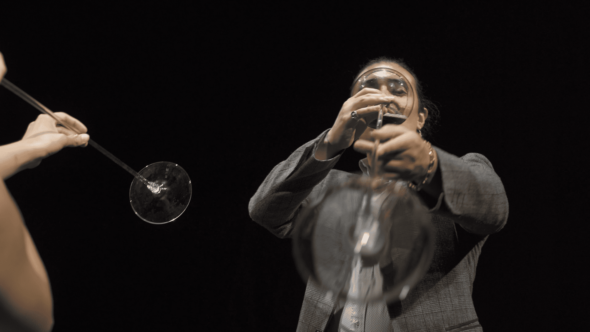 mit einem gefüllten Glas gehen wir auf die Besucher*innen zu und laden sie dazu ein mit uns zu trinken