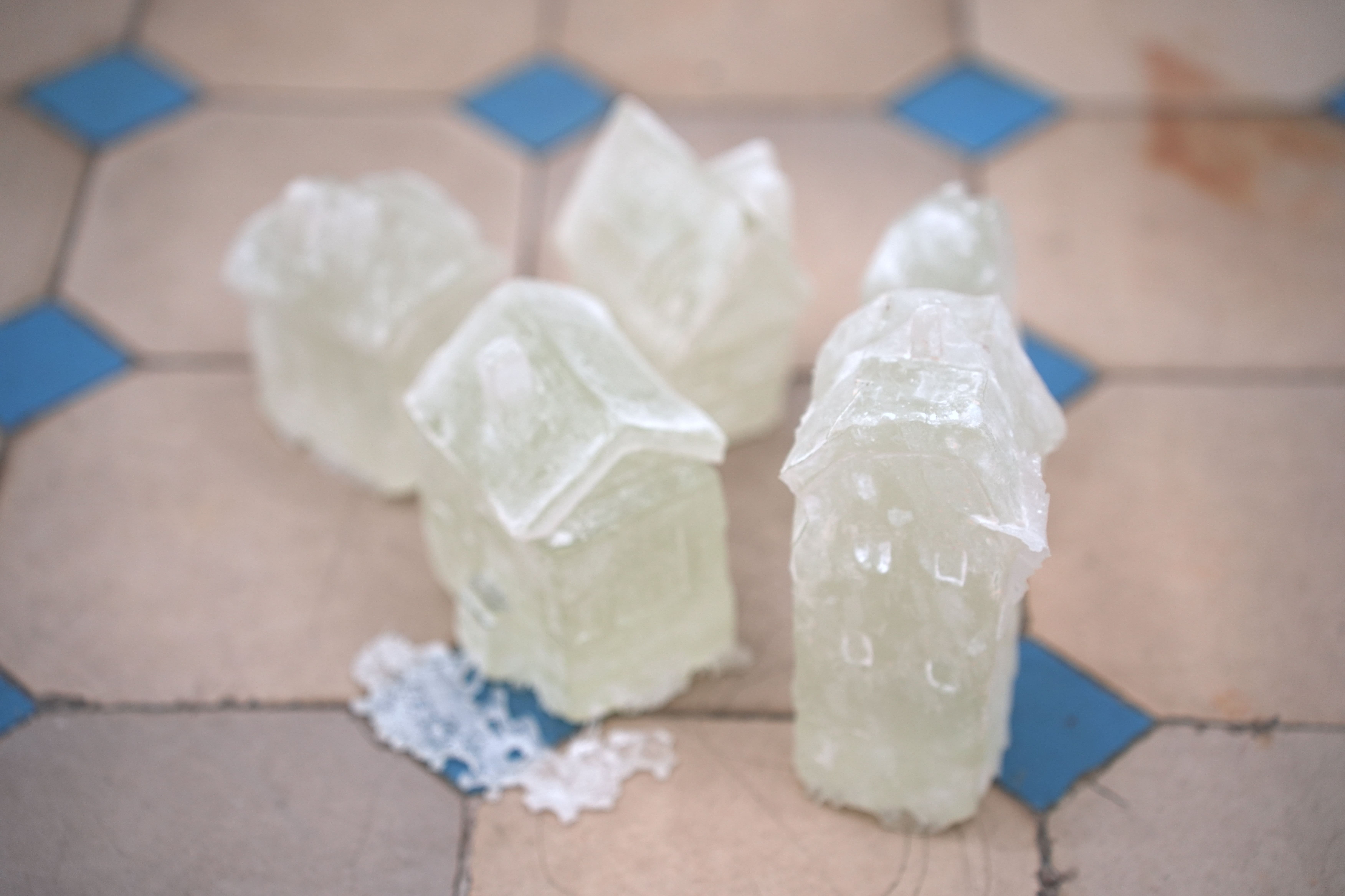 Glas, Salz, 20 Objekte, je 15 x 10 x 10 cm, 2025, in Zusammenarbeit mit Julia Schmutz, Franz Amadeus Gaube und Simone Fetzer